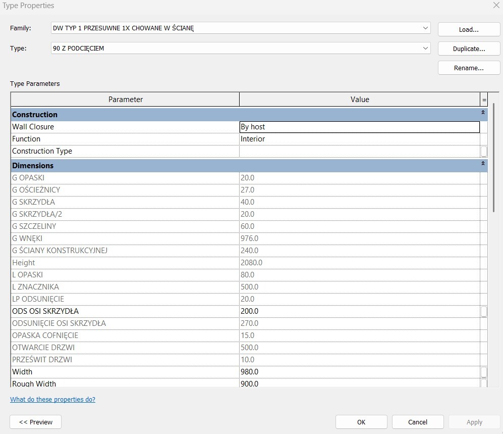 Typ obiektów: drzwi wewnętrzne - obiekty parametryczne 3D