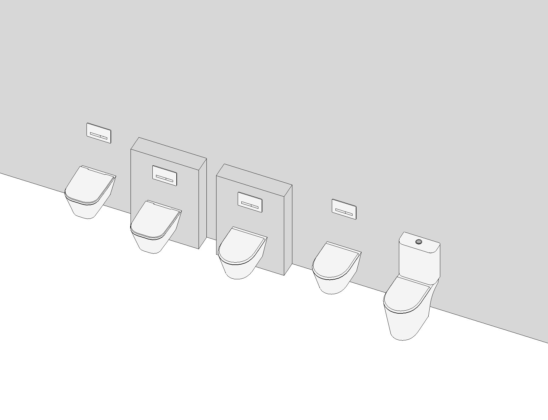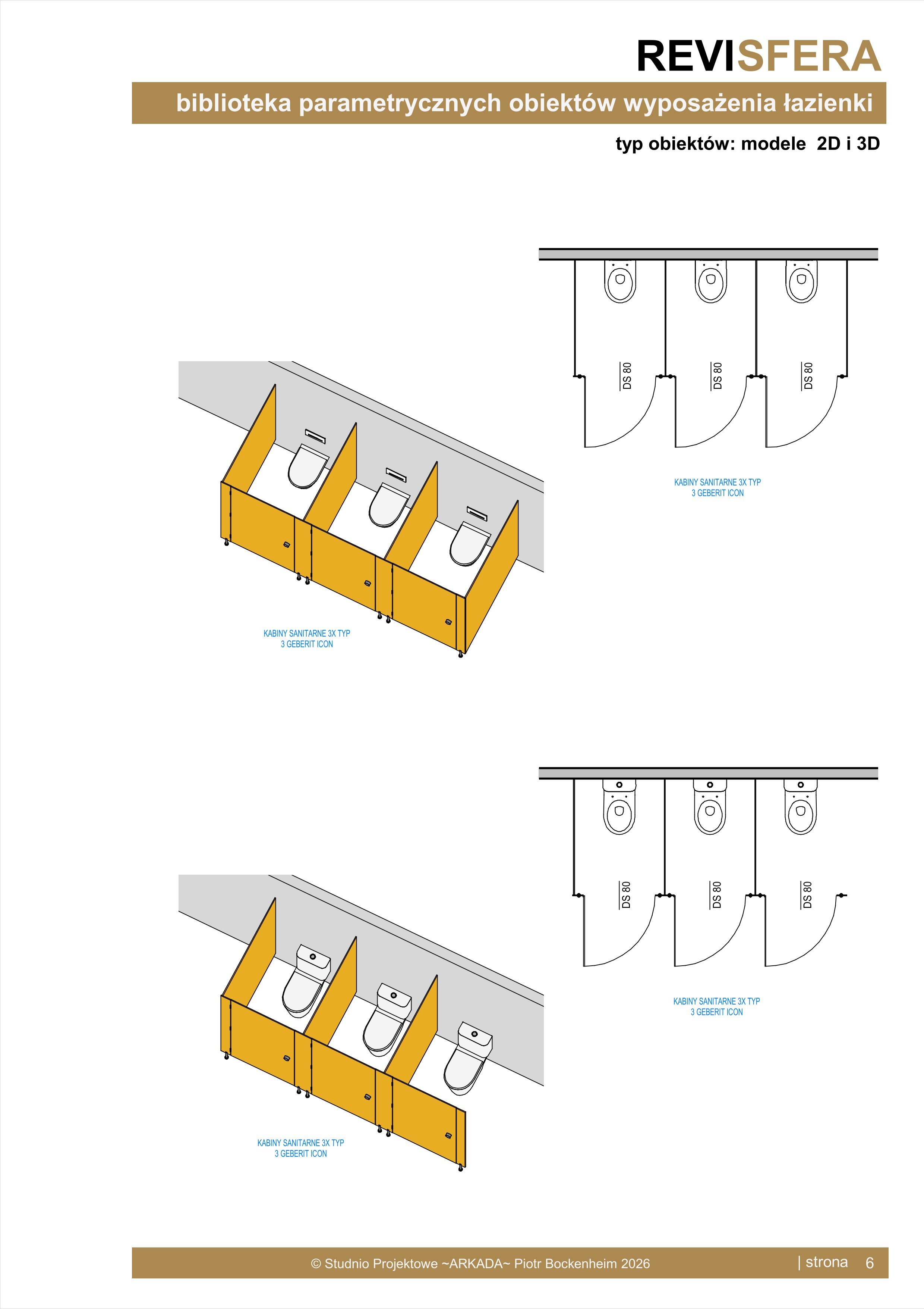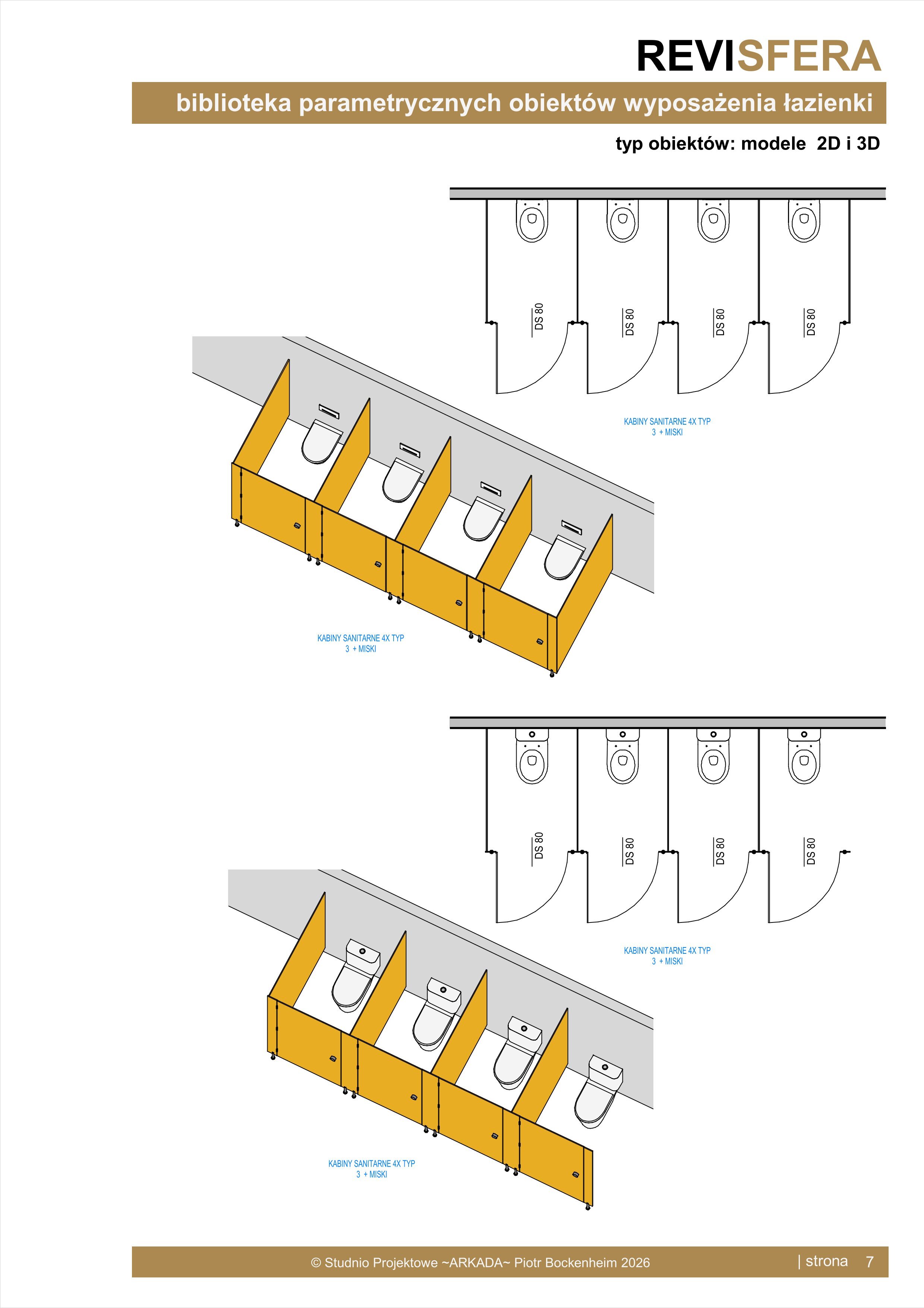 Biblioteka zawiera w większości sparametryzowane elementy wyposażenia łazienek: umywalki, miski toaletowe, prysznice, wanny, zlewy gospodarcze oraz kabiny sanitarne modułowe. Modułowe kabiny sanitarne występują z miskami wiszącymi i stojącymi, jako wolnostojące lub wnękowe. Biblioteka zawiera zarówno obiekty dwuwymiarowe, jak i trójwymiarowe.